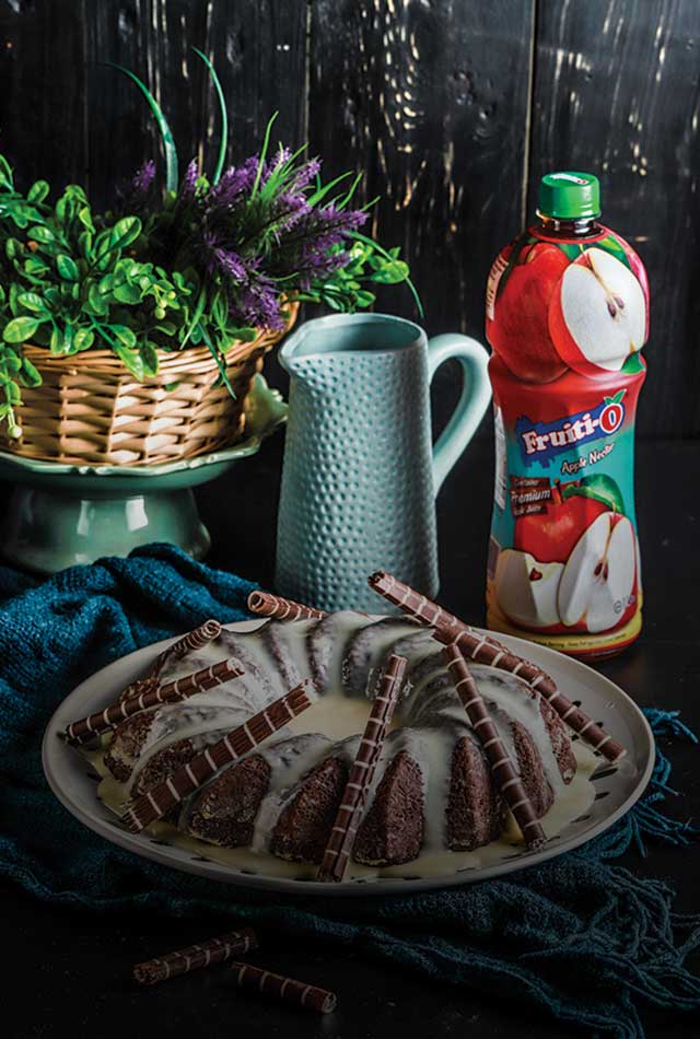 Mix flour, baking soda, salt, cloves, ginger, and cinnamon. Beat butter and then add sugar until it’s light and fluffy. Beat the eggs one at a time. Alternately, add the flour mixture and Fruiti-O Apple Nectar. Fold in the raisins and walnuts. Pour the batter into a greased and lined tin and bake at 180°C for about 1 hour or until a toothpick inserted in the center of the cake comes out clean or with a few moist crumbs. Cool the pan about 15 minutes before carefully loosening and inverting onto a serving platter. Cool the cake completely before preparing the glaze. To make the glaze, stir together icing sugar and Fruiti-O Apple Nectar until a thick yet pourable consistency is formed. Add more sugar or Fruiti-O Apple Nectar as it is necessary. Pour over the cake and serve.